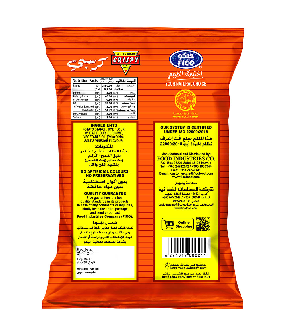 Potato Starch, Rye Flour, Wheat Flour, Curcume, Vegetable Oil, Natural Salt & Vinegar Flavour.