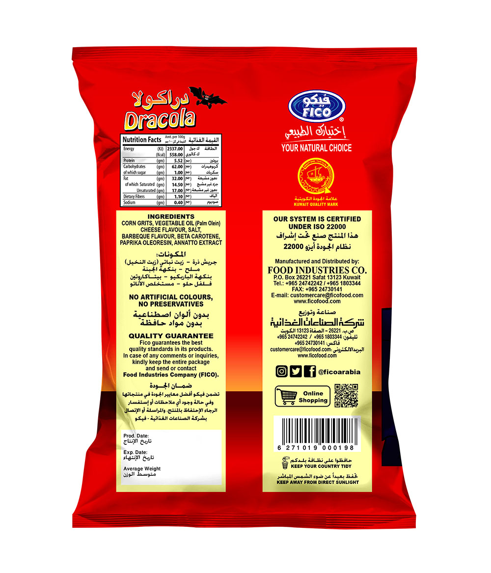 Corn Grits, Natural Cheese Powder, Vegetable Oil (Free of Cholesterol), Salt and Barbeque Flavour.