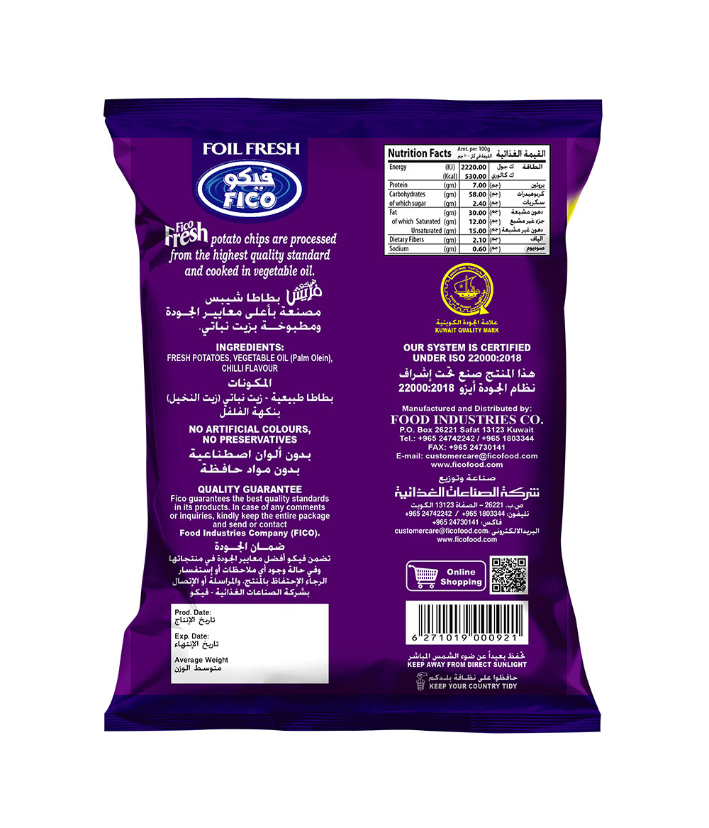 Fresh Potatoes, Vegetable Oil, Natural Chilli Flavour, Natural Flavours without Artificial Colours.