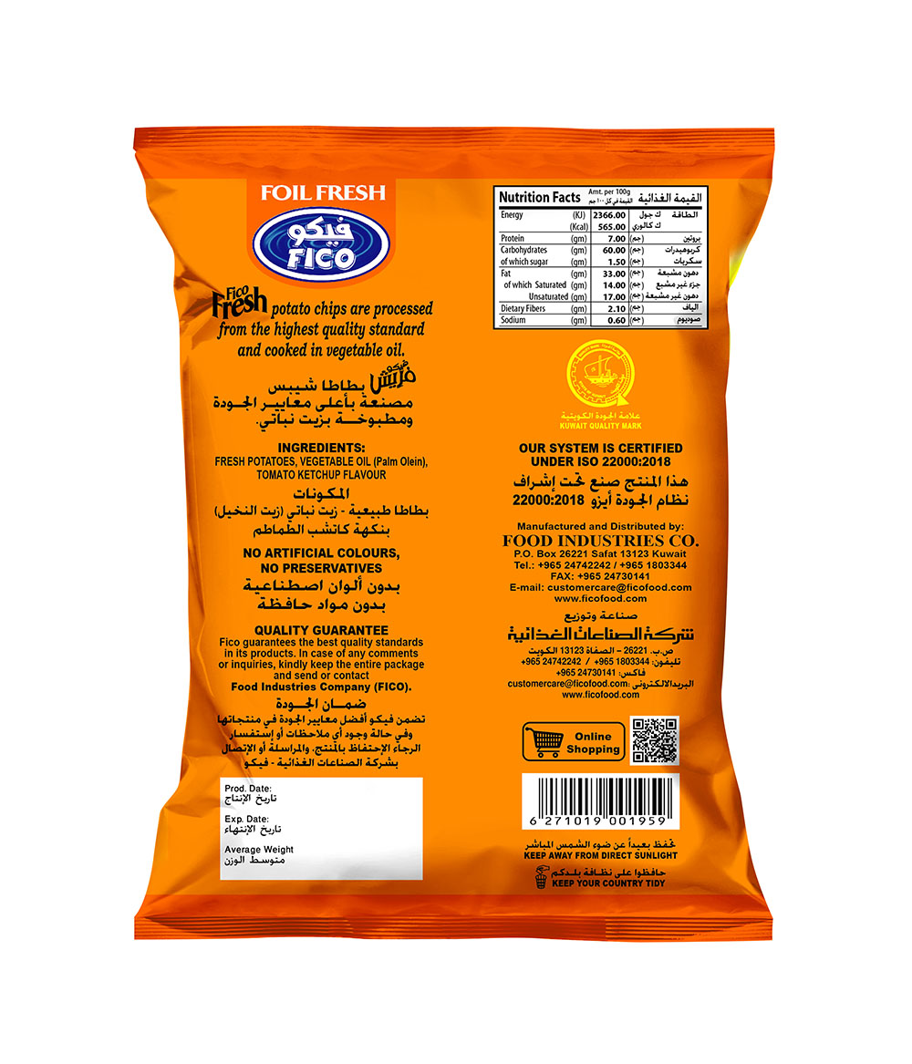 Fresh Potatoes, Vegetable Oil, Natural Tomato Ketchup Flavour, Natural Flavours without Artificial Colours.
