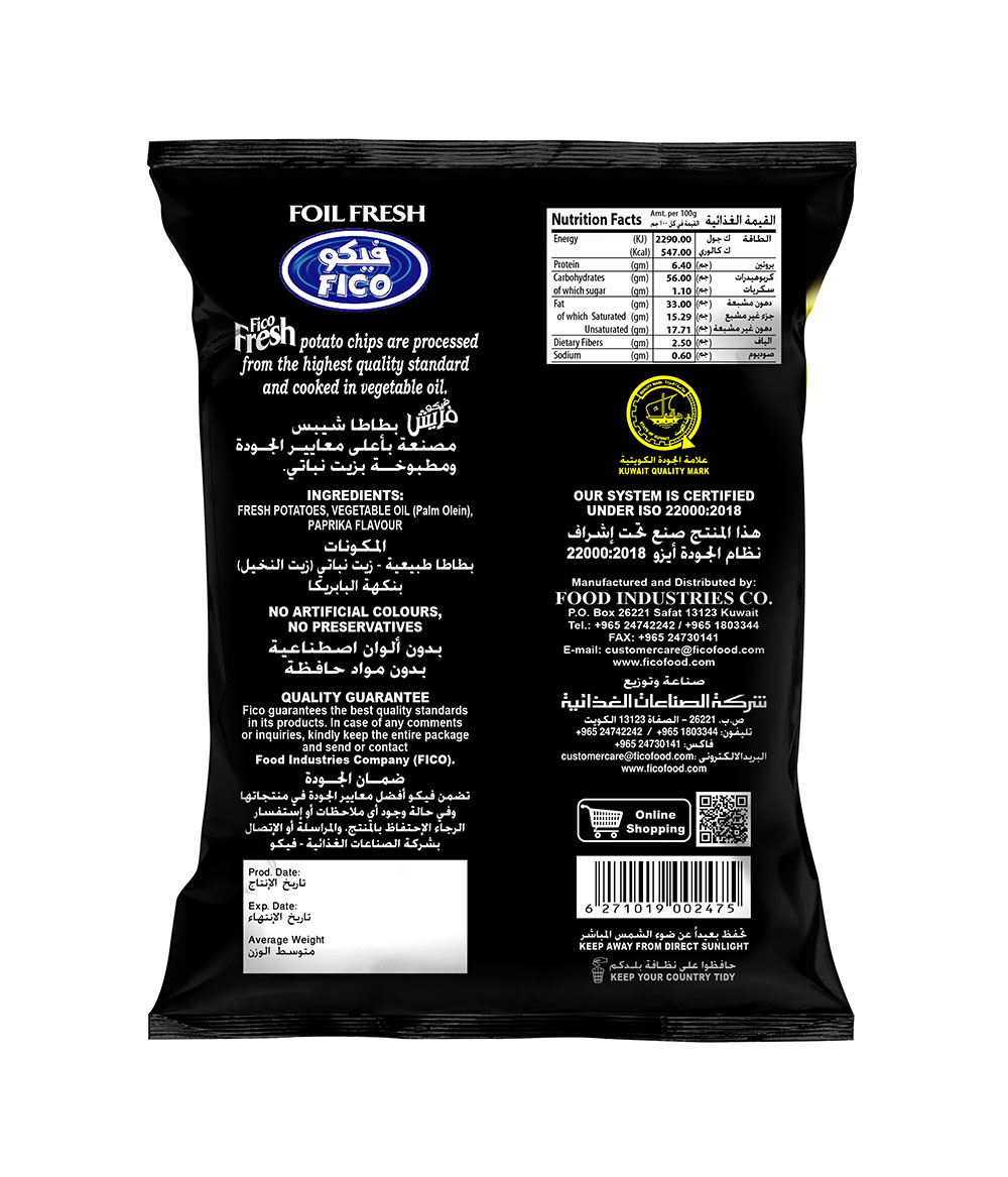 Fresh Potatoes, Vegetable Oil, Natural Paprika Flavour, Natural Flavours without Artificial Colours.