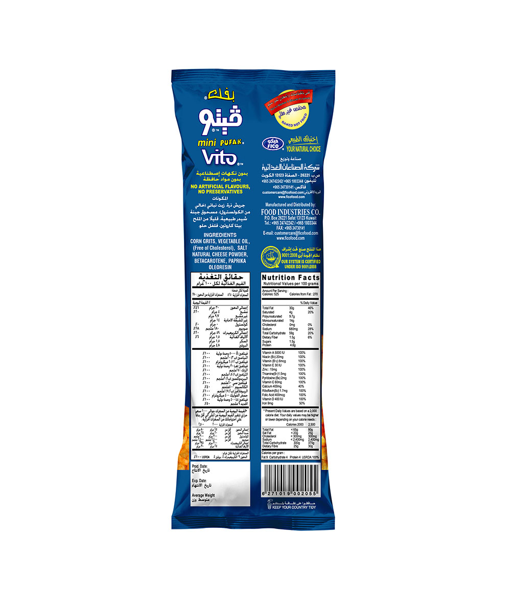 Corn Grits, Vegetable Oil (Free of Cholesterol), Salt, Natural Cheese Powder, Betacarotene, Paprika Oleoresin.