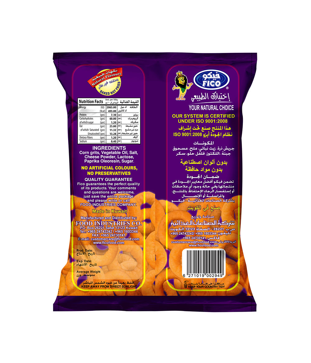 >Ingredients:>Corn Grits, Vegetable Oil, Salt, Cheese Powder, Lactose, Paprika Oleoresin, Sugar.