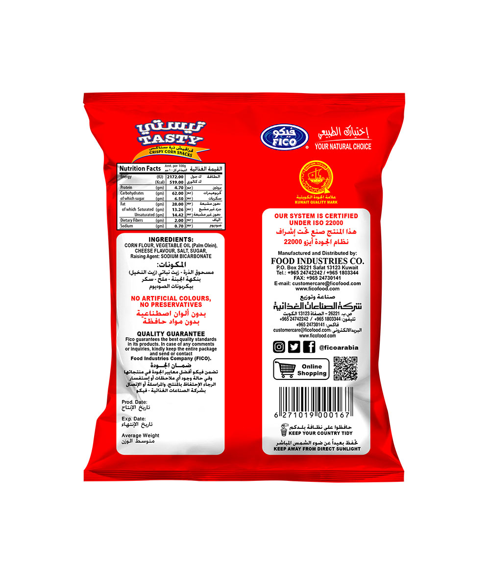 Corn Flour, Salt, Sugar, Natural Cheese Powder, Vegetable Oil (Free of Cholesterol) Raising Agent: Sodium Bicarbonate.